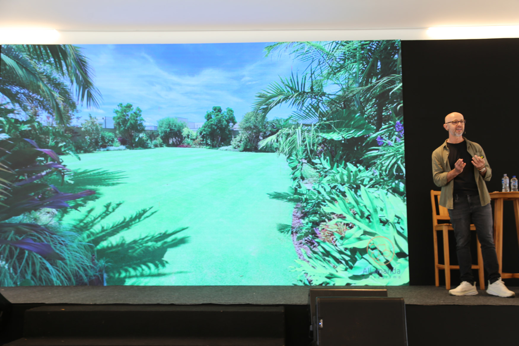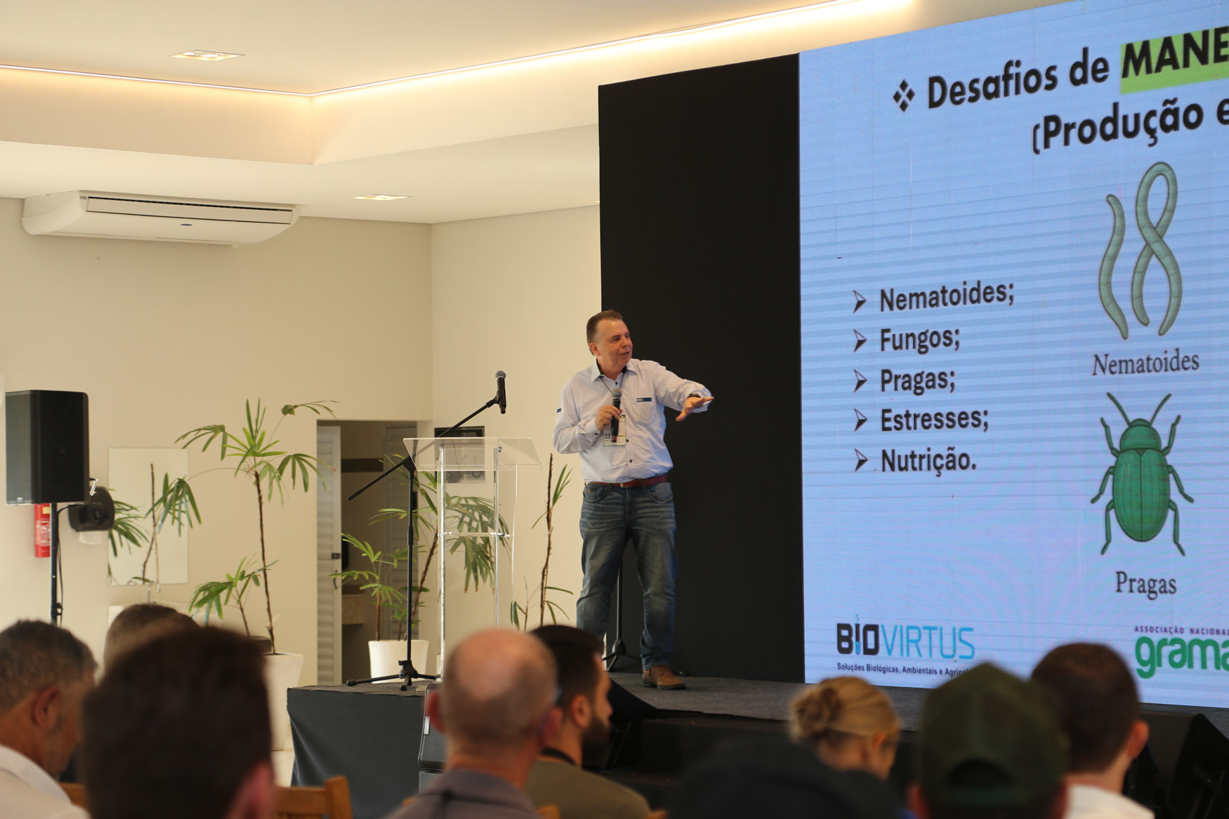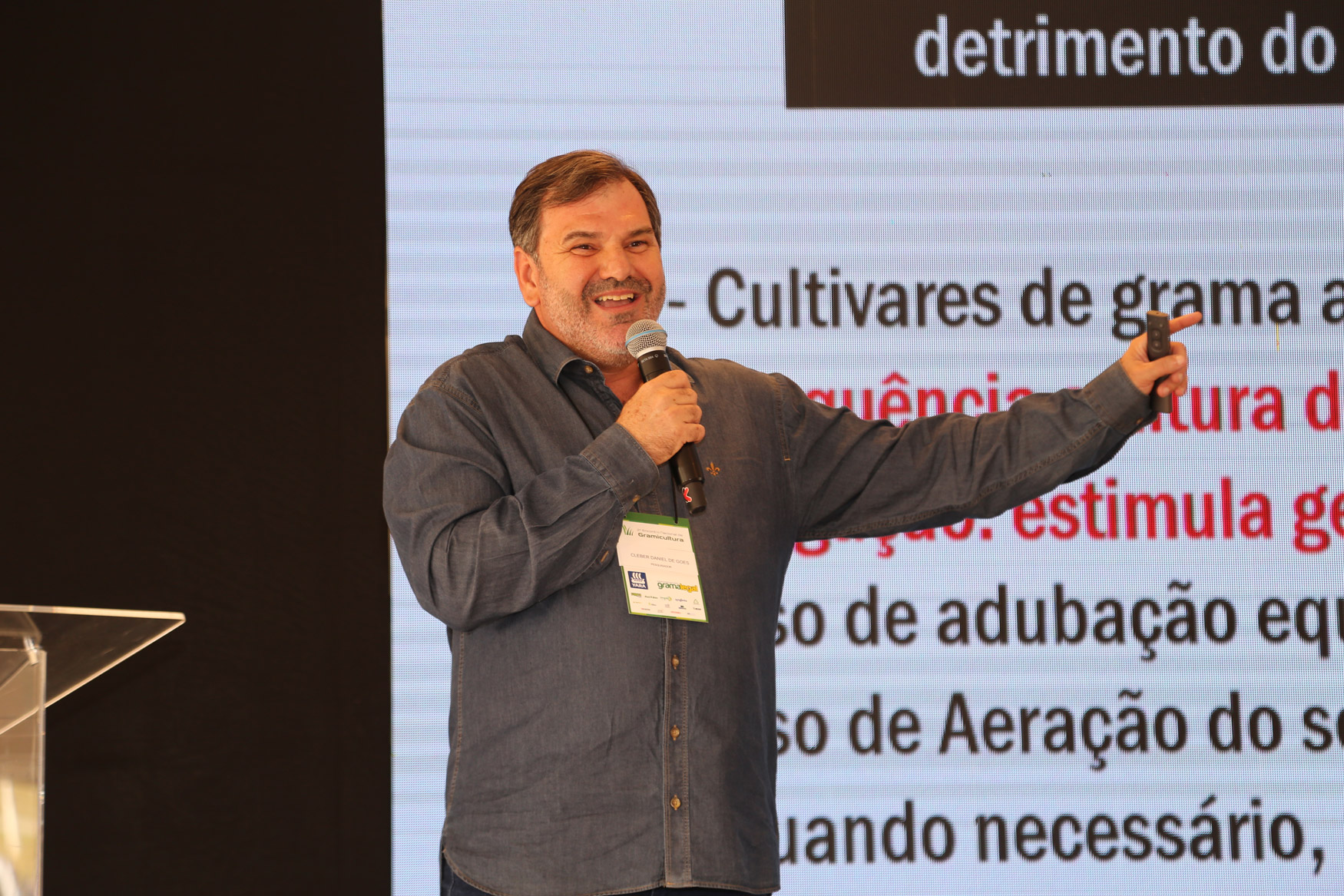 No encontro, abordamos novas técnicas para a implantação e manutenção de gramados, como preparo e correção do solo, plantio, irrigação, adubação, coberturas, corte adequado da grama, controle de pragas e combate a plantas daninhas.